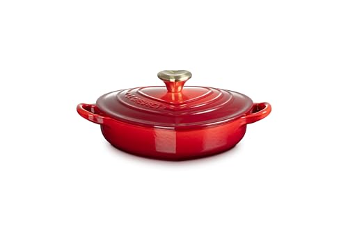 The Shallow Heart Cocotte features a classic heart shape with a lovely stainless steel knob. Its shallow depth makes it ideal for heart-warming casseroles, desserts and breads perfectly sized for sharing. Lovingly crafted from our legendary cast iron, the Heart Cocotte has exceptional heat distribution and retention qualities to lock in flavor, and large loop handles designed for easy lifting from oven to table. The colorful enameled surface minimizes sticking and staining, requires no pre-seasoning, and is easy-to-clean.