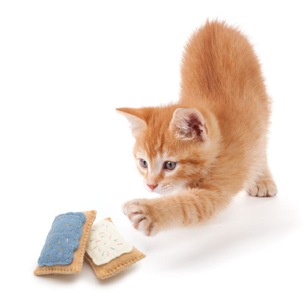 💪 DURABLE: Our pop tart set catnip cat toys is durable and will not tear, break or fade like a polyester cat soothing toy. This cat food toy kitten toy will stay adorable for a long time.